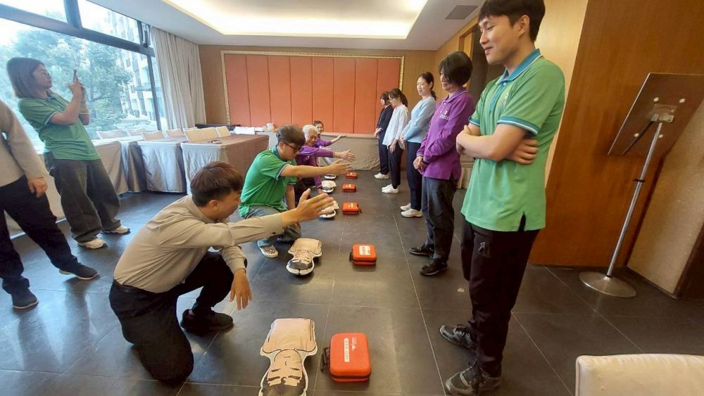 思傑夢想有限公司為「 高雄花季度假飯店」,進行CPR+AED急救教學訓練,