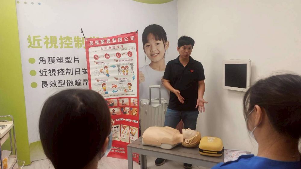 思傑夢想有限公司為「晴采眼科診所」,進行CPR+AED急救教學訓練,