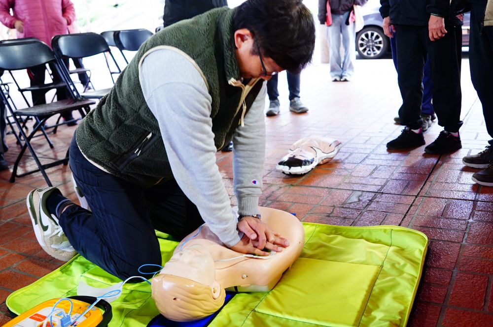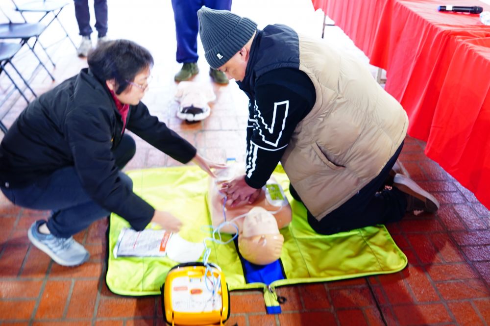 不只是器材,更是守護生命的能力 捐贈儀式當天,理事長親自帶領長者與服務員進行 CPR 與 AED 的實作訓練。透過生動活潑的教學,讓部落的長輩與工作人員不再害怕急救,而是能自信地在關鍵時刻伸出援手。