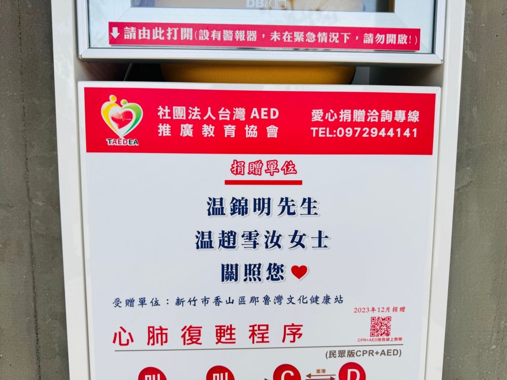 【公益捐贈AED】新竹市香山區那魯灣文化健康站 | 感謝 溫錦明、溫趙雪汝 善心捐贈