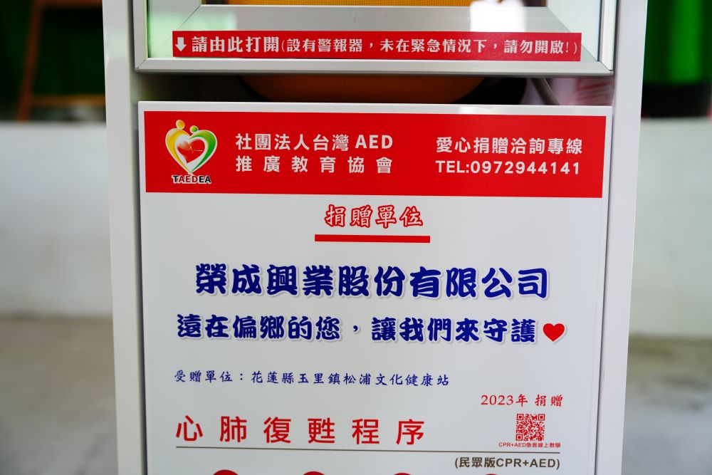 【公益捐贈AED】花蓮縣玉里鎮松浦文化健康站 | 感謝 榮成興業股份有限公司 捐贈