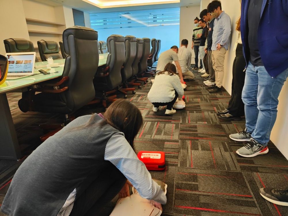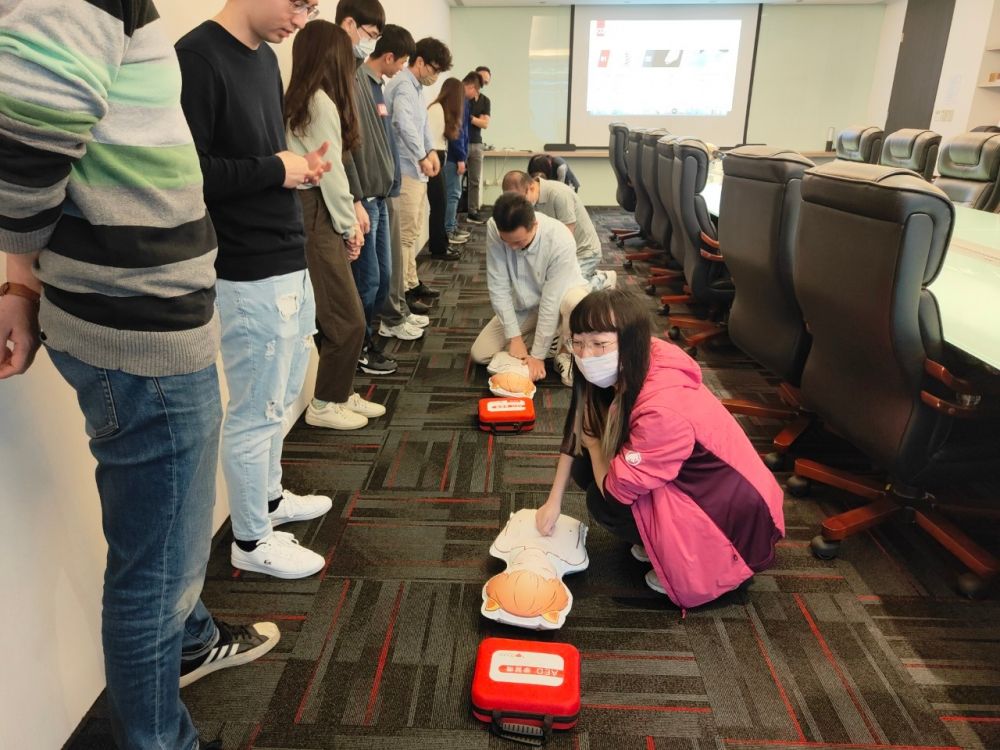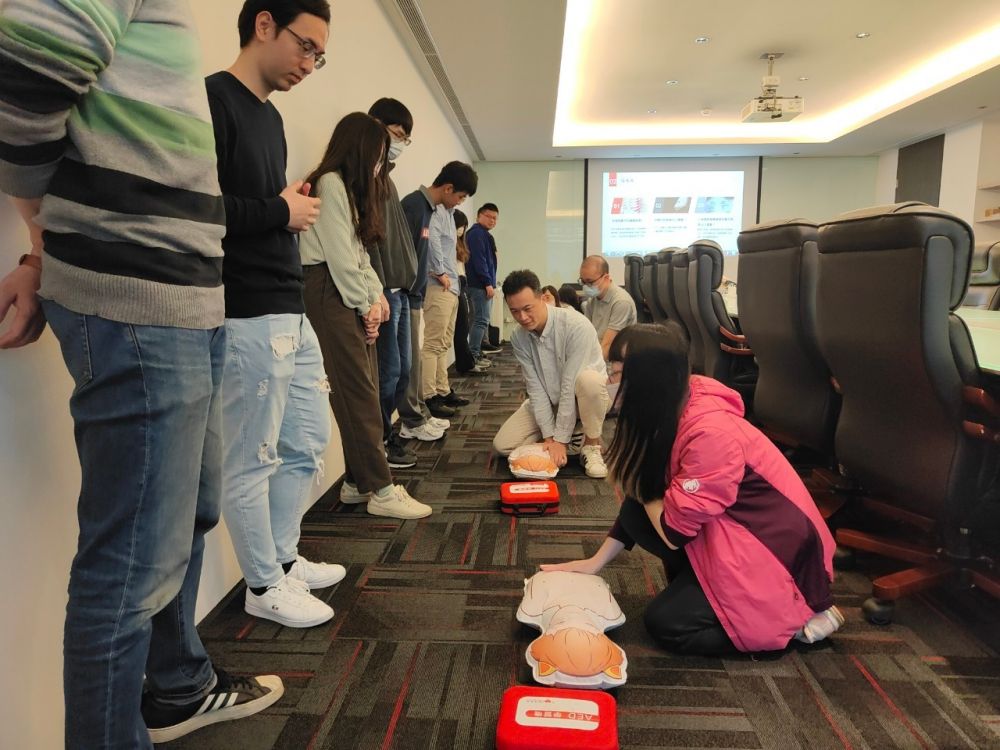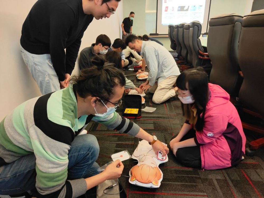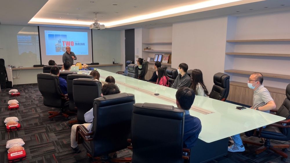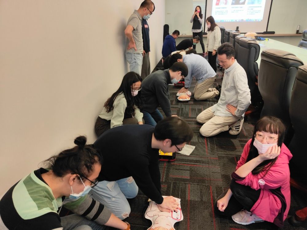 思傑夢想有限公司香港商榮惠電子有限公司台灣分公司」,進行CPR+AED急救教學訓練,